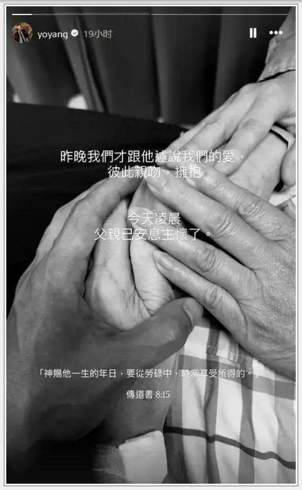 那是2022年的冬天 台北一家医院的加护病房外,走廊灯光泛着淡淡的蓝白色。杨祐宁坐在椅子上,手机贴在耳边 父亲的声音断断续续传来:“你小时候摔断腿那次,半夜疼得直哭,是你妈抱着你在院子里走了一整晚。”医生已经说了,时间不多了。但他们谁也没提“告别”这两个字,反而翻起了三十年前的旧事。他说起自己小时候偷拿爸爸的钱包去买漫画书,结果被发现后罚抄《弟子规》;父亲笑了 说“抄得好,现在你还挺有规矩”。这些琐碎的回忆,在那一刻变得格外清晰,仿佛不是在回忆 而是在重新活过一遍。